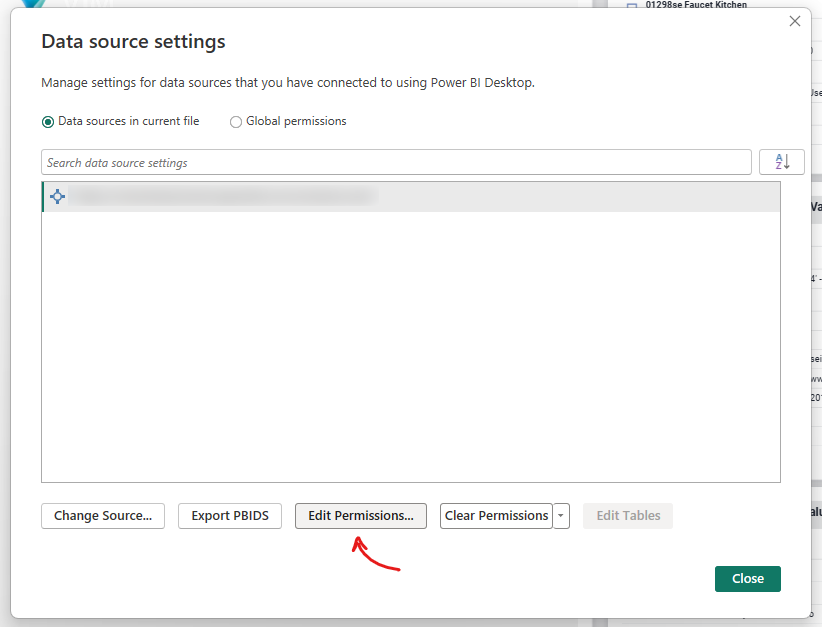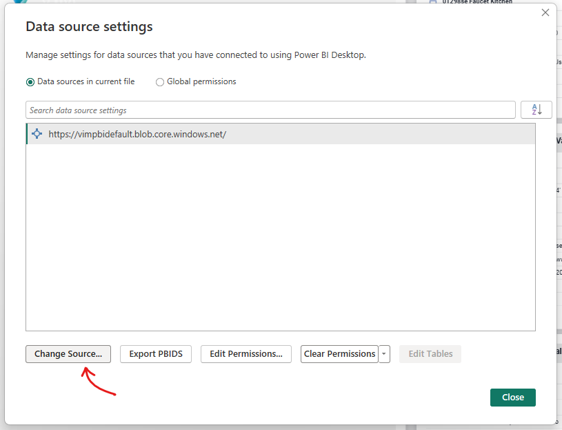 Press "Close" to exit the "Data source settings" dialog.