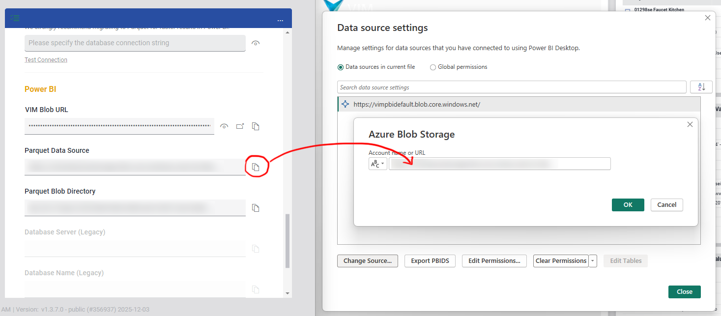 Copy the "Parquet Data Source" from VIM Enterprise and paste it into the Power BI dialog then press "OK"