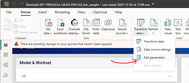 - This file should look like: "BimAudit-RVT-PRQ5.6.0.e-U6.0.0-DM1.0.0.pbix"