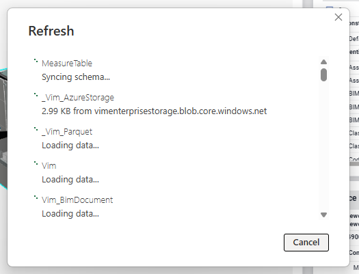 Copy the "Parquet Blob Directory" from VIM Enterprise and paste it into the Power BI dialog then press "OK"